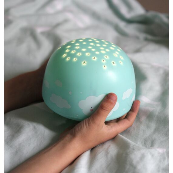 Αυτή η μοναδική λάμπα με σχέδια από χαριτωμένα συννεφάκια προβάλλει τα αστέρια στο ανώτατο όριο του υπνοδωματίου ή του υπνοδωματίου παιδιού σας. Μπορείτε εύκολα να μεταβείτε ανάμεσα σε διαφορετικά χρώματα αστεριών με το πάτημα ενός κουμπιού: ουράνιο τόξο, πορτοκαλί, πράσινο ή μπλε. Ο αυτόματος χρονοδιακόπτης σβήνει τη λυχνία προβολέα μετά από 30 λεπτά, έτσι ώστε το μικρό σας να μπορεί να κοιμηθεί κάτω από ένα αστρικό ουρανό!