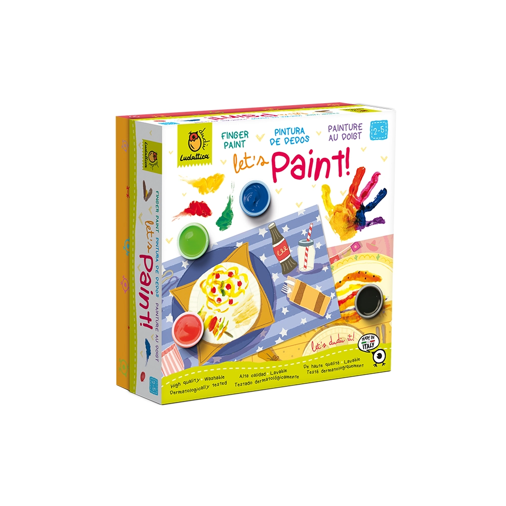 Ένα πολύ δημιουργικό παιχνίδι για να πειραματιστούν τα παιδιά με τις δακτυλομπογιές, με έναν διασκεδαστικό και ταυτόχρονα ασφαλή τρόπο! Περιέχει 12 μεγάλες σελίδες και ένα σετ από υψηλής ποιότητας δακτυλομπογιές, ιταλικής προέλευσης, κατάλληλες για παιδιά από 2 ετών. Τα παιδιά μπορούν να χρησιμοποιήσουν τις δακτυλομπογιές απευθείας με τα χέρια τους και να διακοσμήσουν τα πιάτα όπως θέλουν πάνω στα υπέροχα, ήδη εικονογραφημένα τραπέζια της Ludaticca!