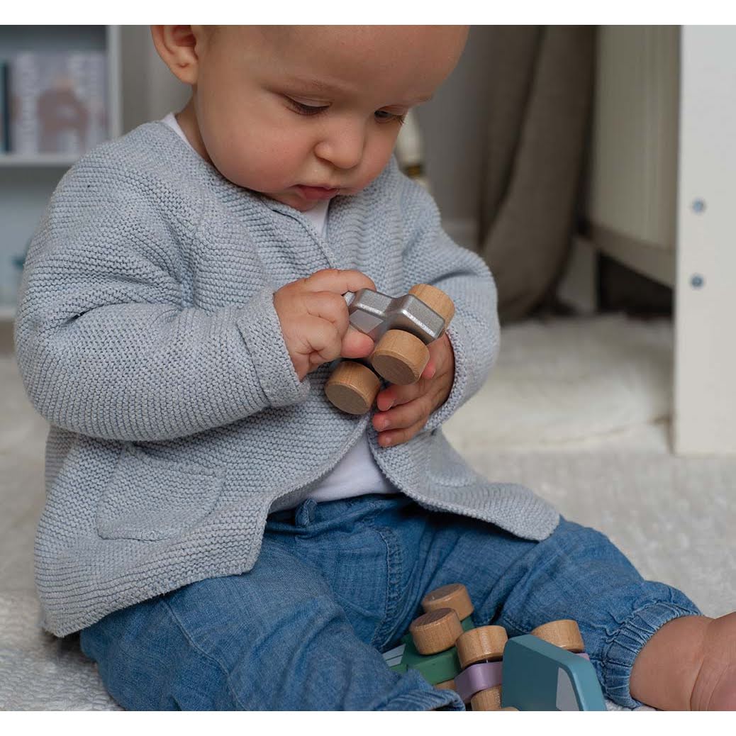 Ξύλινα αυτοκινητάκια σε μέγεθος που μπορούν να κρατήσουν τα μικρά χεράκια, με ζωηρά χρώματα απόλυτα ασφαλή για παιδιά και με στρογγυλούς μεγάλους τροχούς για να τσουλάνε εύκολα! Έρχονται σε ένα σούπερ υφασμάτινο σάκο για να μπορείτε να τα έχετε μαζί σας όπου και να πάτε! Ένα απίστευτα διασκεδαστικό παιχνίδι!