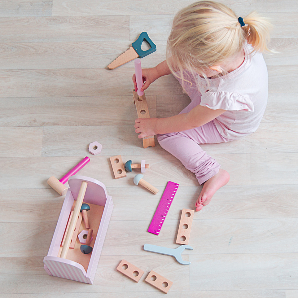 Αν σας αρέσουν τα μαστορέματα αυτό είναι το πιο τέλειο βαλιτσάκι με όλα τα απαραίτητα εργαλεία! Ο μικρός σας ξυλουργός θα ενθουσιαστεί με όλα αυτά τα εργαλεία!
