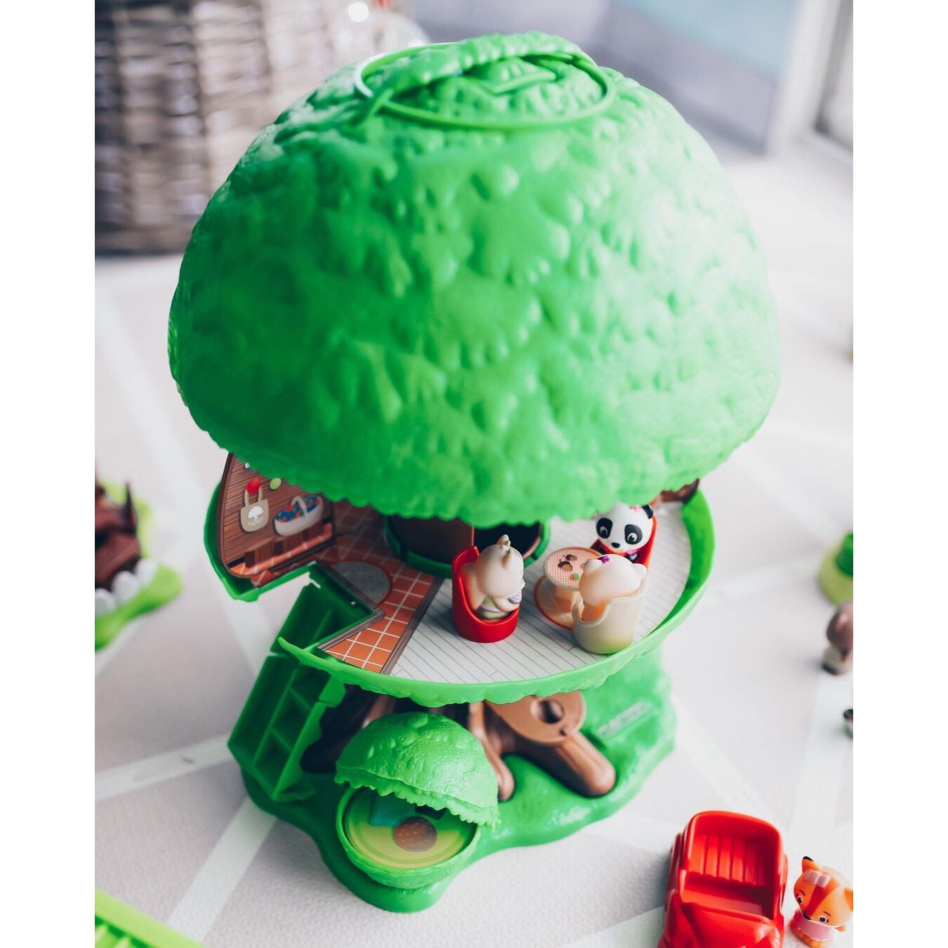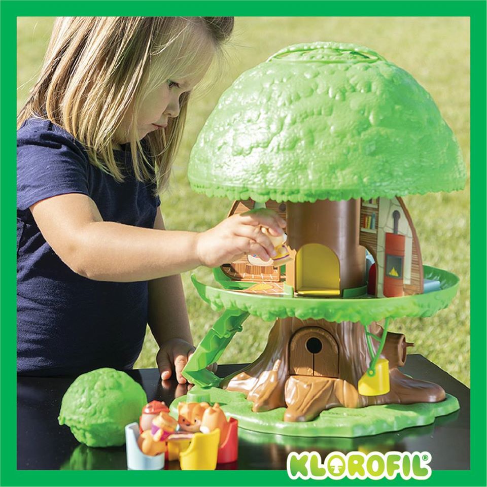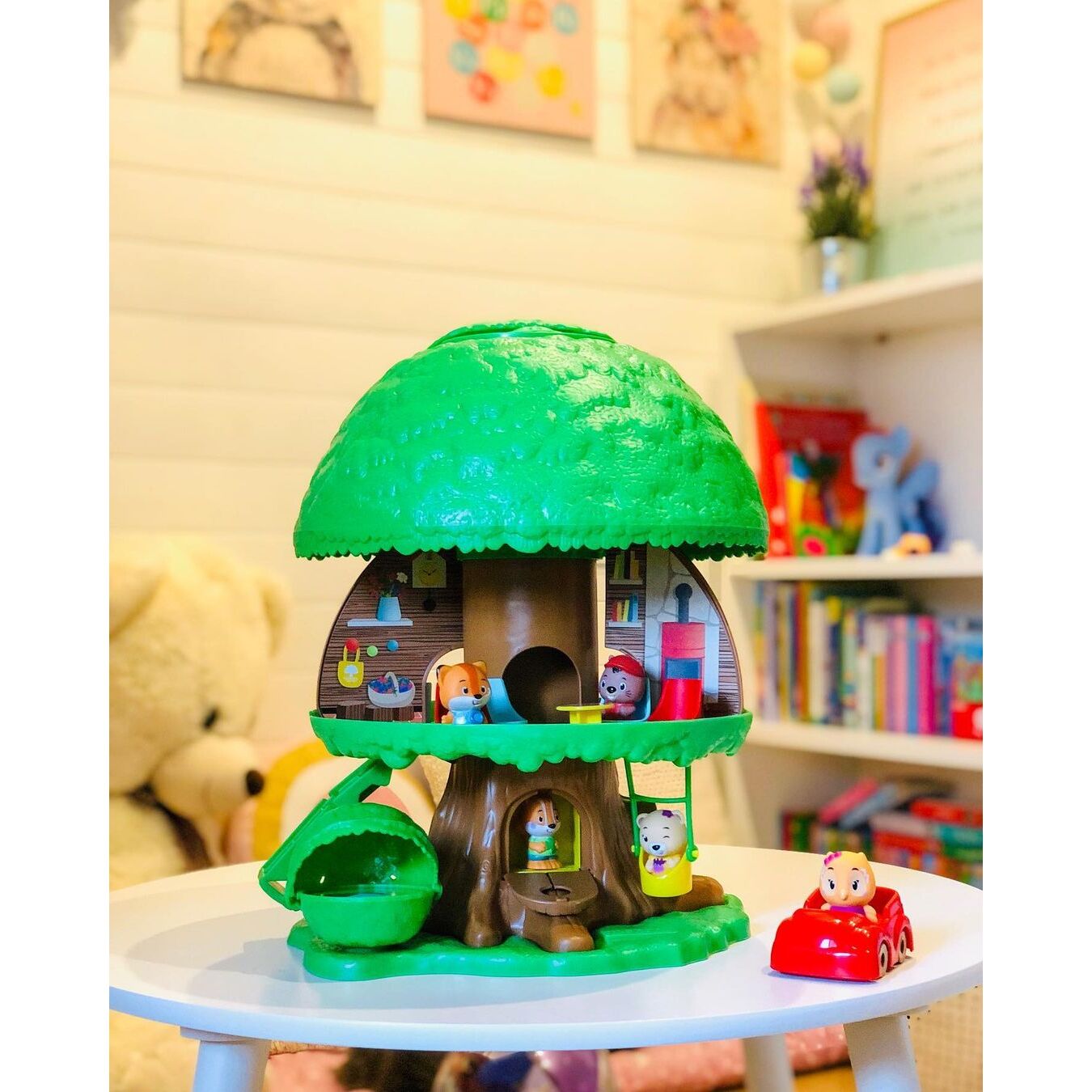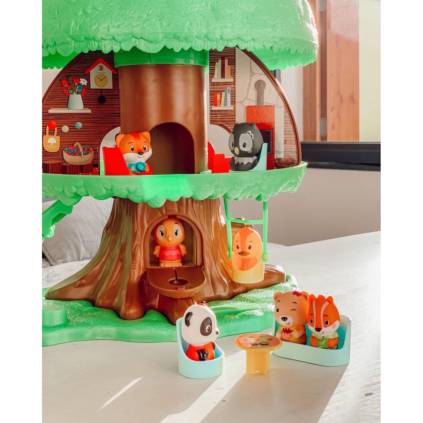 Όταν το δέντρο ανοίγει, ένας ολόκληρος κόσμος στην εξοχή ανοίγει μπροστά του! Πατήστε στην οροφή και “Pop!”Το δέντρο αποκαλύπτει όλα τα μυστικά του ανοίγοντας: ένα δωμάτιο, ένα μπάνιο, μία κουζίνα, ένα σαλόνι και ακόμη και ένα γκαράζ! Πολλές δραστηριότητες για να ανακαλύψετε, να σκηνοθετήσετε τους χαρακτήρες του μαγικού δάσους: ένα ασανσέρ, ένα θάμνο με ένα χώρο ανάπαυσης κρυμμένο μέσα, μία τσουλήθρα, ένα αυτοκίνητο, μία κούνια…