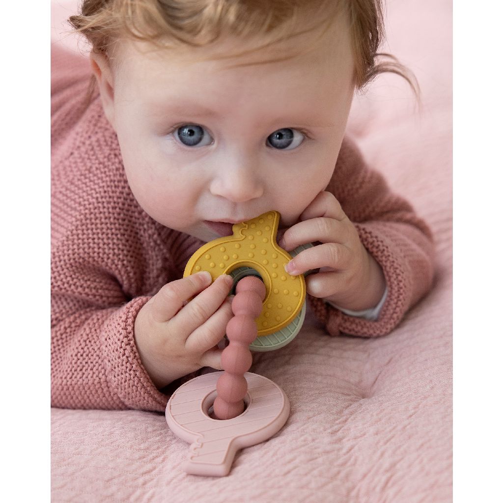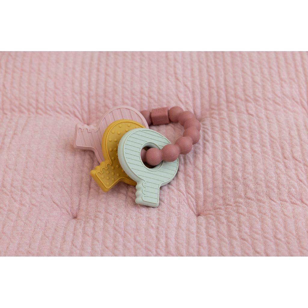 Η εμφάνιση των πρώτων δοντιών είναι ένα ορόσημο αλλά όχι πάντα ευχάριστο για το μωρό σας. Αυτό το πολυλειτουργικό μασητικό, σε σχήμα μπρελόκ, είναι ένα διασκεδαστικό παιχνίδι το οποίο θα προσφέρει καταπραϋντική δράση στα πονάκια οδοντοφυΐας και παράλληλα θα βοηθήσει στην τόνωση των νέων δοντιών του μικρού σας.