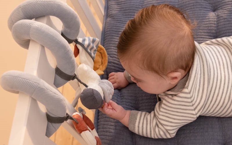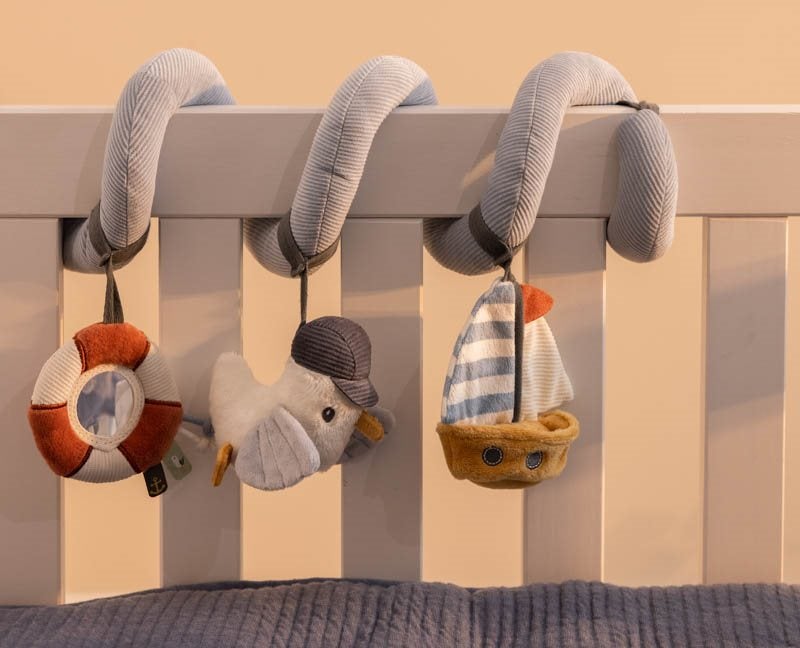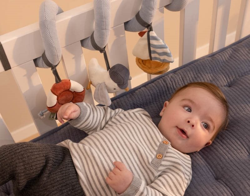 Κάντε την κάθε μέρα μια περιπέτεια για τα μικρά παιδιά με αυτό το ελκυστικό σπιράλ δραστηριοτήτων. Διεγείρει τον πρώτο συντονισμό χεριού-ματιού του μωρού σας και προσφέρει ώρες ψυχαγωγίας. Φτιαγμένο από βαμβάκι και κοτλέ, αυτό το παιχνίδι με αίσθηση αφής περιλαμβάνει έναν κρεμαστό γλάρο, ένα ιστιοφόρο ένα σωσίβιο και έναν καθρέφτη για ανακάλυψη. Είναι εύκολο να το συνδέσετε σε όλα, από παρκοκρέβατο μέχρι κάθισμα αυτοκινήτου και καρότσι.