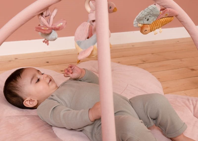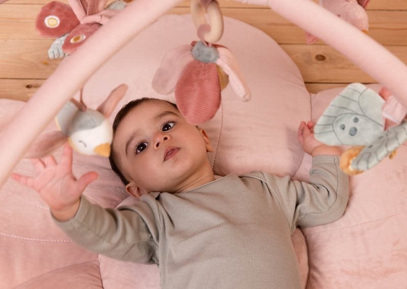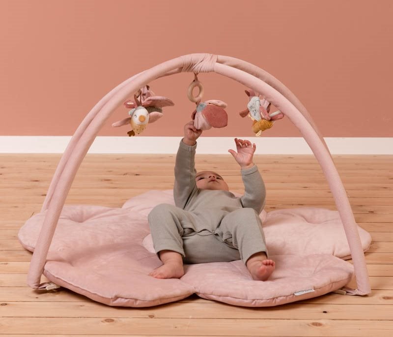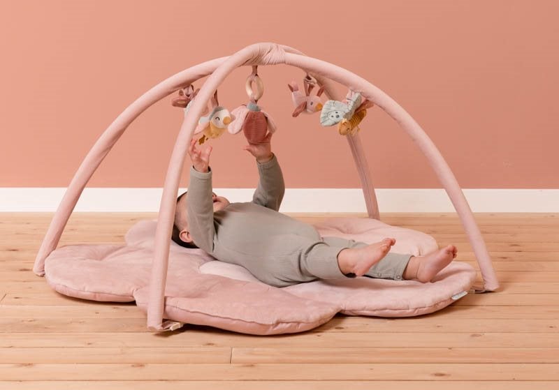 Κάθε μέρα είναι μια περιπέτεια με αυτό το χαλάκι δραστηριότητας σε σχήμα λουλουδιού. Σε έντονο ροζ τόνο, έχει δύο κοτλέ καμάρες με 5 διαφορετικά κρεμαστά απαλά παιχνίδια. Το πουλάκι, το σπουργίτι, το λουλούδι και οι πεταλούδες θα διασκεδάσουν το μικρό σας, ενώ ταυτόχρονα θα βοηθήσουν στην ανάπτυξη των αισθητηριακών του δεξιοτήτων και στο συντονισμού χεριού-ματιού.