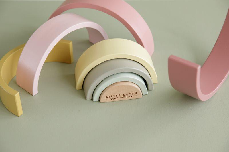 Ένας νέος και πρωτότυπος πύργος στοίβαξης από τη Little Dutch, που έχει τη μορφή ενός πανέμορφου ουράνιου τόξου. Το τριασδιάστατο ουράνιο τόξο μπορεί όμορφα να διακοσμήσει το παιδικό δωμάτιο, αλλά και να χαρίσει ατελείωτες ώρες παιχνιδιού και διασκέδασης στο παιδί σας. Αποτελείται από 8 καμάρες που ταιριάζουν απόλυτα μεταξύ τους, με τις οποίες το παιδί μπορεί να παίξει και να μάθει να δημιουργεί διαφορετικές κατασκευές, χρησιμοποιώντας τη φαντασία του. Ένα ξύλινο εκπαιδευτικό παιχνίδι, που αναπτύσσει τις κινητικές δεξιότητες των παιδιών, τα ενθαρρύνει να μάθουν, να ανακαλύψουν αλλά και να παίζουν με φαντασία και υπομονή.