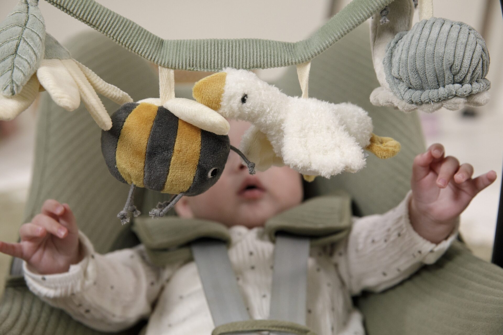Η μελισσούλα , η μικρή χήνα, το λουλουδάκι και το σαλιγκάρι θα κρατήσουν συντροφιά στο μικρό σας ενώ ταυτόχρονα θα διεγείρει τον συντονισμό χεριών-ματιών.
