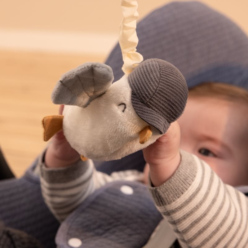 Χορέψτε, χορέψτε, χορέψτε! Αυτός ο μαγευτικός γλάρος λατρεύει να κινείται. Τραβήξτε τον και αφήστε το μικρό σας να τον παρακολουθήσει να ανεβαίνει. Ενισχυμένο με διάφορα χρώματα και υφές, σίγουρα θα τραβήξει την προσοχή του μωρού σας. Συνδέστε αυτό το μαλακό παιχνίδι σε ένα κάθισμα αυτοκινήτου ή σε ένα καρότσι για να διασκεδάσετε το μικρό σας ενώ βρίσκεστε εν κινήσει.