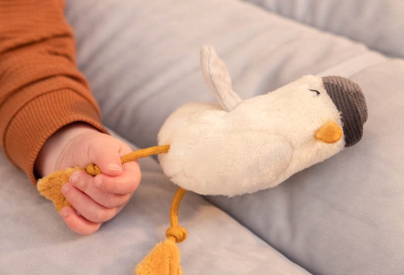 Αυτό το χαριτωμένο στρώμα δραστηριοτήτων με θέμα το λιμάνι διαθέτει διάφορες υφές και χαρακτηριστικά για απτική διέγερση. Το μικρό σας είναι σίγουρο ότι θα ανακαλύψει μια σειρά από διασκεδαστικές εκπλήξεις, από έναν γλάρο που τρίζει όταν τον στριμώχνετε, μέχρι έναν πελεκάνο με τσακισμένα φτερά και ένα ψαράκι στο ράμφος του. Ένα από τα σύννεφα έχει ένα διαφανές δαχτυλίδι που κροταλίζει όταν το μωρό σας παίζει μαζί του.