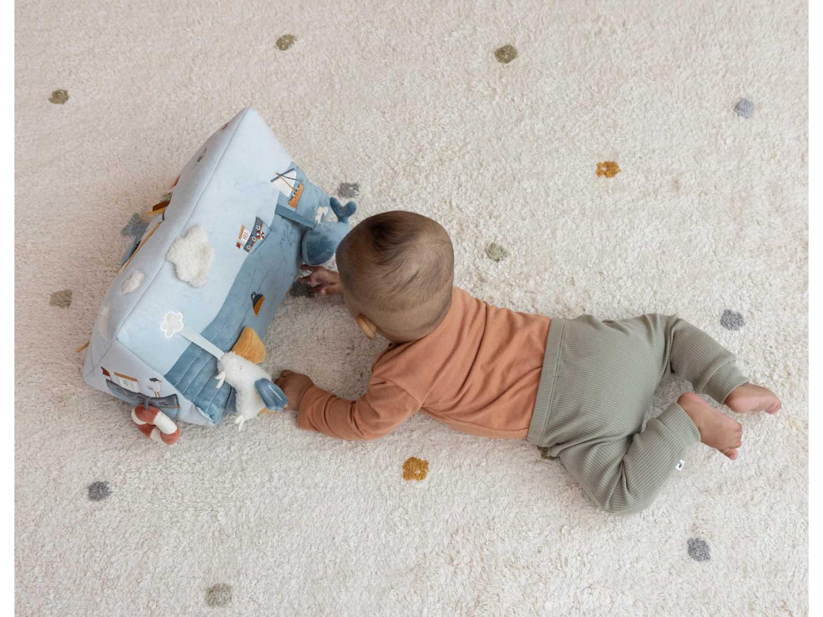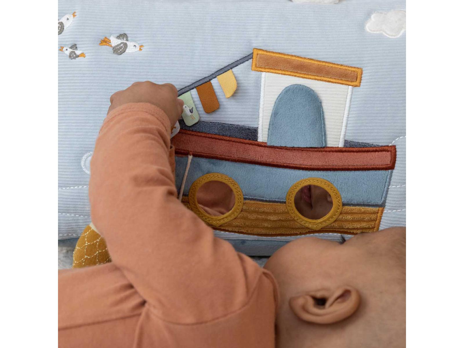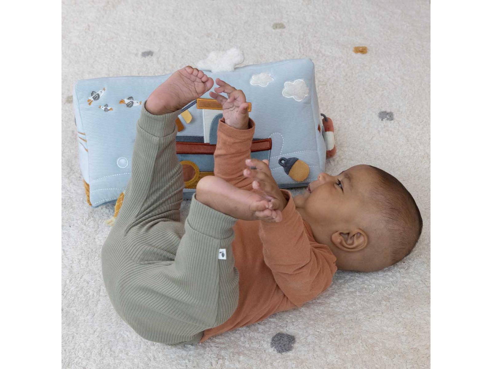 Το πλοίο σας έφτασε! Αυτό το εξαιρετικά διασκεδαστικό τρίγωνο δραστηριοτήτων οδηγεί τα μικρά παιδιά σε μια περιπέτεια στον κόλπο όταν είναι μπρούμυτα. Υπάρχουν τόσα πολλά να ανακαλύψετε σε αυτό το ταξίδι. Από ψάρια που τρίζουν και καθρέφτες για αυτοεξερεύνηση μέχρι μια φάλαινα και έναν πελεκάνο που φωνάζει. Γεμάτο με πολλά παιχνίδια και διασκεδαστικές υφές, θα απασχολήσει τις αισθήσεις και τη φαντασία του μωρού σας.