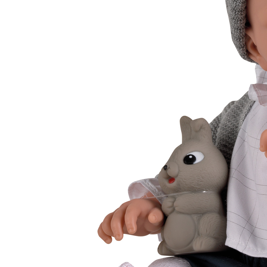 Ο John φοράει τα πιο μοντέρνα ρουχαλάκια τα οποία είναι χειροποίητα και φτιαγμένα από κορυφαία υφάσματα! Έχει φορέσει την γκρι ζακέτα της με το σκουφάκι της και είναι έτοιμη για τρυφερές αγκαλιές και ατέλειωτο παιχνίδι!