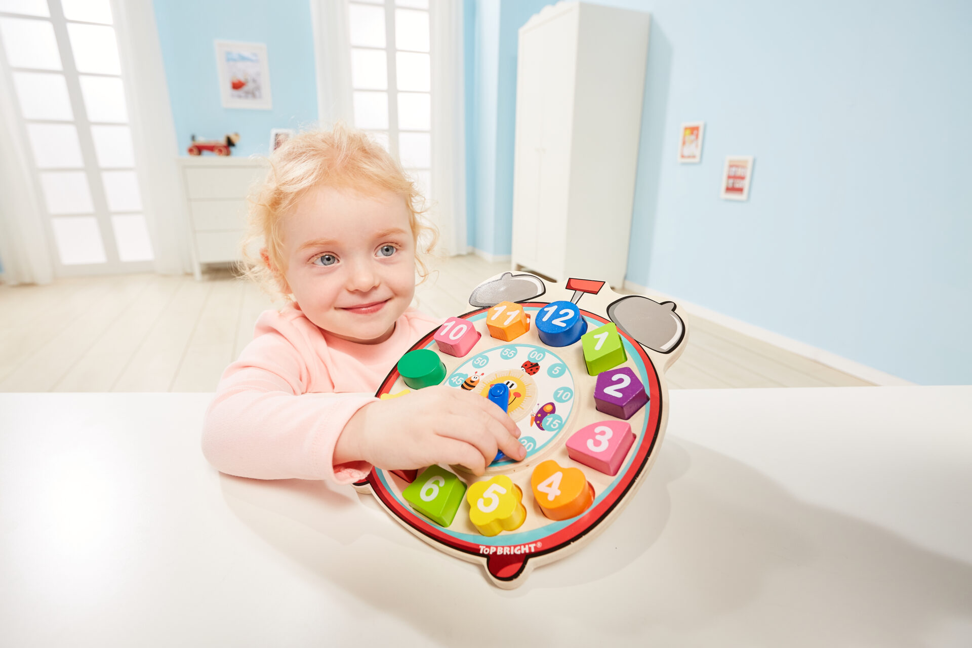 Τι ώρα είναι; Ώρα για παιχνίδι φυσικά! Με το εκπαιδευτικό αυτό ξύλινο ρολόι τα παιδιά θα καταφέρουν να έρθουν σε επαφή με την έννοια της ώρας και των λεπτών. Τα έντονα χρώματα θα προσελκύσουν εύκολα το ενδιαφέρον των παιδιών ενώ τα διαφορετικά σχήματα των κομματιών του παζλ θα διευκολύνουν τα παιδιά να βάλουν τους αριθμούς στη σωστή τους θέση. Με την χρήση των σφηνωμάτων θα καταφέρουν ευχάριστα και γρήγορα να μάθουν τα χρώματα, τα σχήματα, τους αριθμούς καθώς και να μετρούν μέχρι το 12.